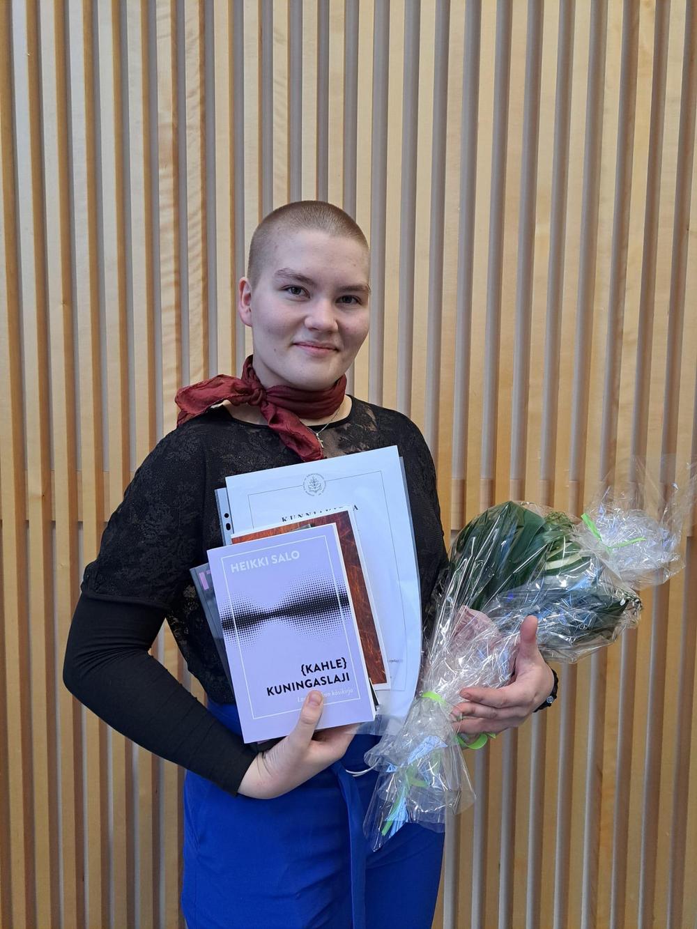 Ohita intro -laulutekstikilpailun voitto Sonja Ikoselle Haukiputaan lukiosta